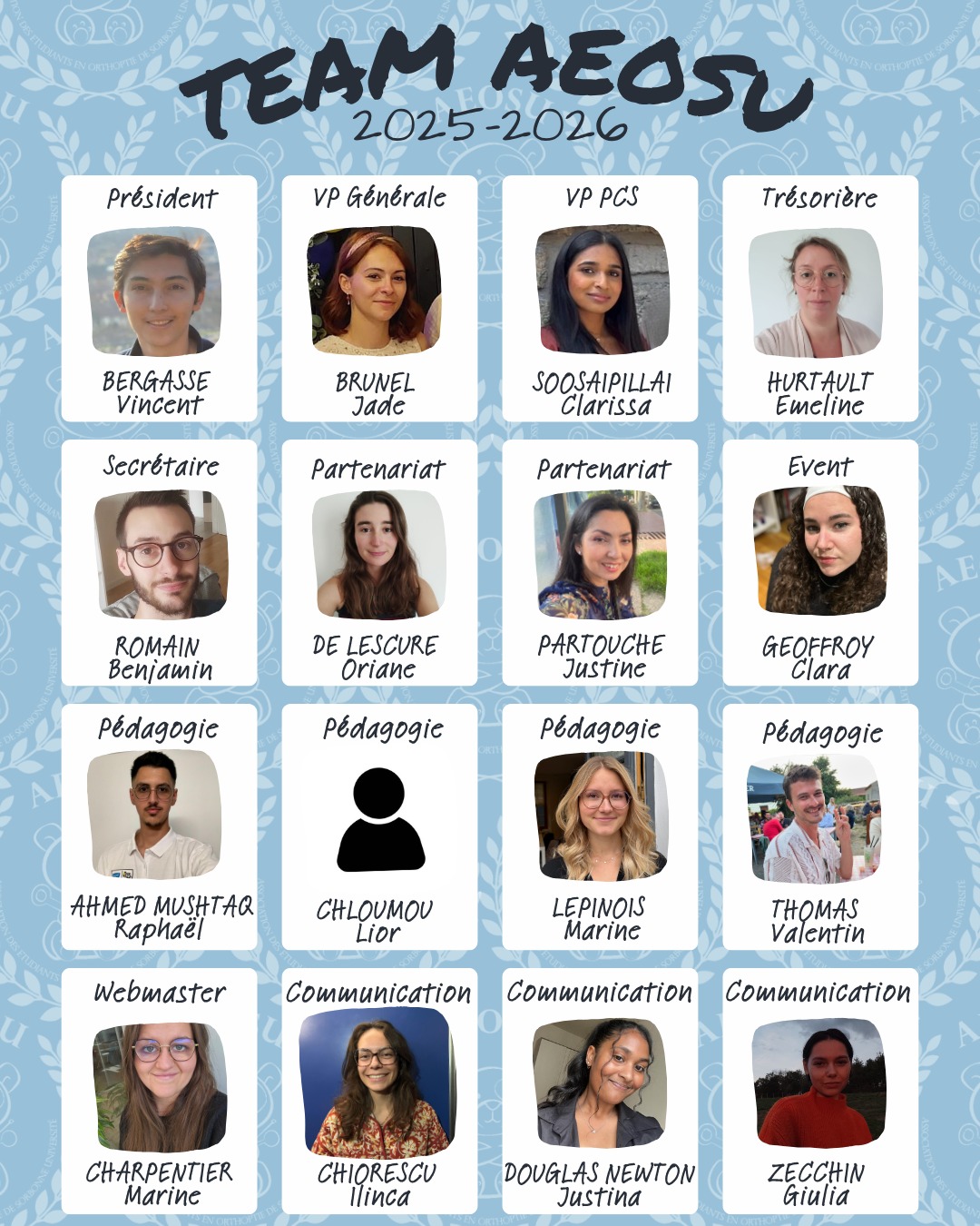 La team AEOSU 2025–2026 est officiellement en place et prêt à faire vibrer la vie étudiante tout au long de l’année.